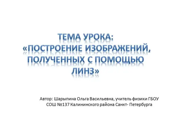 Цель урока: сформировать практические умения применять знания о свойствах линз для нахождения изображений графическим методом. Презентация охватывает большой материал, помогает контролировать план урока, удерживает повышенное внимание, вызывает дополнительный интерес и увеличивает возможности урока.
