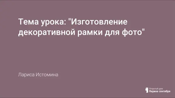 Цели урока: обучение новым приемам работы, использование нового материала в работе; воспитание вкуса в создании рамок для фото; развитие творческих способностей, которые позволяют открыть себя и свои возможности.