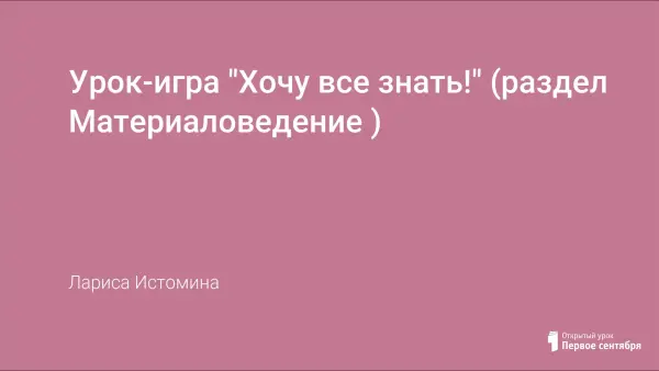 Урок разработан для учащихся 6-х классов, прошедших раздел материаловедения, в виде игры. В процессе игры систематизируются знания по материаловедению; обобщаются знания о происхождении волокон растительного и животного происхождения.