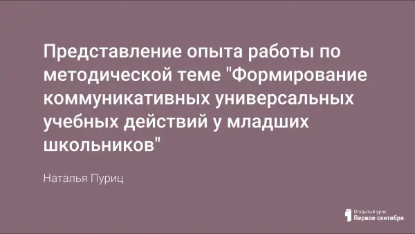 В современном обществе происходят перемены, увеличился поток информации, а это значит, что ученику необходимо усвоить большой объём знаний, уметь самостоятельно усваивать знания и выстраивать свои отношения с другими людьми, работать в группе и коллективе, быть гражданином и патриотом своей Родины, т.е. стать конкурентоспособным на рынке труда. Одна из задач учителя начальных классов – работать над формированием коммуникативных УУД. Коммуникативные учебные действия обеспечивают сотрудничество – умение слушать и понимать друг друга, в совместной деятельности уметь договариваться, распределять роли, вести дискуссию, а также контролировать друг друга. Именно поэтому я работают над проблемой «Формирование и развитие коммуникативных универсальных учебных действий у младших школьников».