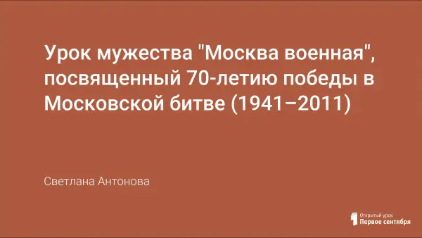 Урок воссоздает картину жизни и быта Москвы и ее жителей в условиях военного времени. Подводит учащихся к пониманию того, что жизнь Москвы и в годы войны, несмотря на напряженность и трагизм того периода, продолжала оставаться многогранной. Показывает, как война раскрывала характеры москвичей, давала толчок к проявлению душевных и личностных качеств. Убеждает учащихся в том, что побеждало врага не только оружие, но и сила духа, вера в победу, любовь.