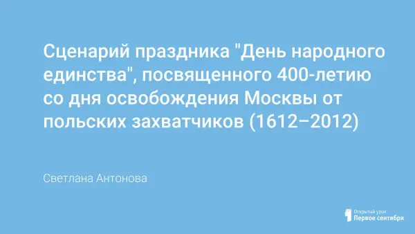 Сценарий праздника воссоздает картину жизни нашего государства в начале XVII века в условиях Смутного времени. Знакомит учащихся с трагическими страницами русской истории. Подводит к пониманию обстановки напряженности и трагизма периода времени Лихолетья. Показывает и раскрывает характеры и душевные качества россиян. Формирует чувство гордости и ответственности за право называться гражданином России.