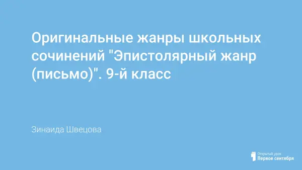 Сочинение – универсальная творческая форма работы ученика, которая позволяет продемонстрировать его читательскую квалификацию, речевую компетентность, аналитические способности и эрудицию. Одним из оригинальных жанров школьных сочинений является письмо. Урок объясняет суть письма, характеризует виды писем, представляет анкету и прочие особенности эпистолярного жанра.