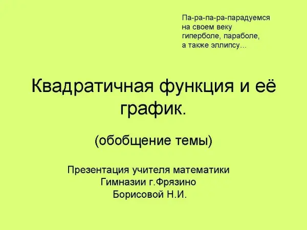 В статье приведены разработки уроков по теме "Квадратичная функция и ее график".