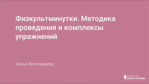 В статье приводятся упражнения, которые можно использовать на различных физминутках (для глаз, общего воздействия, для улучшения мозгового кровообращения, для снятия напряжения с плечевого пояса и т.д.).