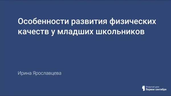 В статье рассматриваются особенности физического развития детей от 6 до 10 лет. Рассматриваются основные физические способности (качества): силовые (сила), скоростные (быстрота), координационные (ловкость и равновесие), выносливость, гибкость.