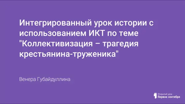 При разработке урока использованы документы по теме. Дана хронология исторических событий 30-х годов. Цель урока – раскрыть сущность коллективизации, причины ее проведения, цели, результаты и последствия. Инсценированы фрагменты романа М.А. Шолохова «Поднятая целина».