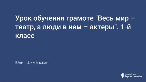 Урок обучения грамоте "Весь мир – театр, а люди в нем – актеры". 1-й класс