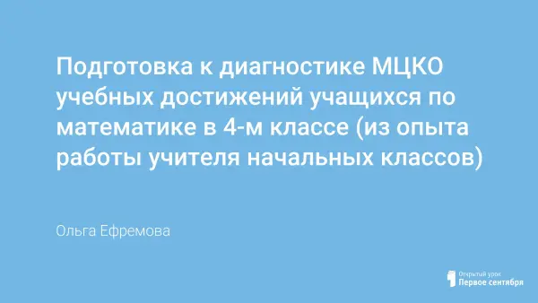 Работая много лет в школе, на первый взгляд, кажется, что это обычная плановая аттестация учащихся 4-х классов по предметам за курс обучения в начальной школе. Но анализируя, с чего начать подготовку к диагностике МЦКО, возникает много вопросов, как помочь ученику преодолеть трудности и показать те результаты, на которые он способен. На примере подготовки к диагностике по математике я хотела бы рассказать вам, уважаемые учителя начальных классов, как помочь ученикам подготовиться и достойно пройти диагностику по предмету.