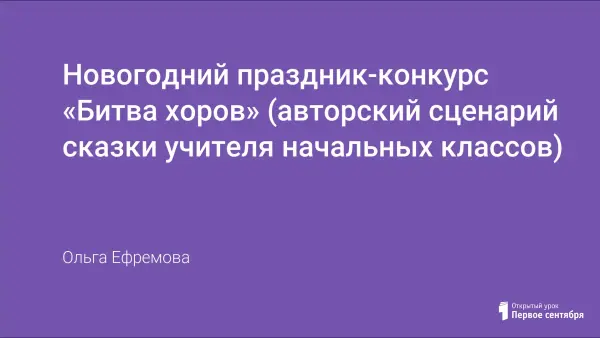 Представлен авторский сценарий сказки учителя начальных классов в формате инсценированного представления, которое заканчивается исполнением песни на новогоднюю тематику. Слаженная работа с классом, коллективный творческий процесс и привлечение родителей учащихся – неотъемлемые составляющие успешного проведения интересного Новогоднего мероприятия в начальной школе.