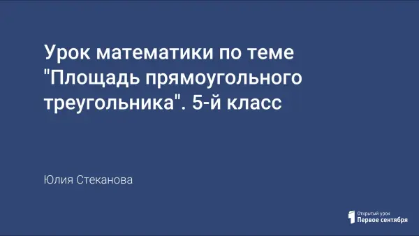 Урок математики в 5-м классе создает условия для восприятия, осмысления и первичного запоминания обучающимися изучаемого материала. Задача урока: подвести детей к самостоятельному нахождению площади прямоугольного треугольника; углубить математические знания; активизировать познавательную деятельность учащихся через исследовательскую деятельность.