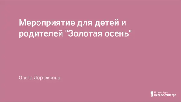 В последние годы утрачена культура семейного праздника. И если школа возьмет на себя подготовку и проведение совместных с родителями праздников, она не только многократно усилит воспитательный эффект, но и возрождает традиции доверительного общения родителей с детьми, традиций совместного проживания значимых событий, совместной деятельности и совместной радости. Праздник «Золотая осень» проводится в сентябре-октябре. Дети и родители вместе готовятся к нему.