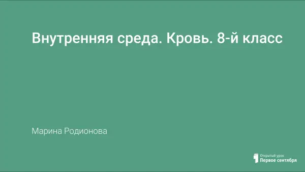 Урок знакомит учащихся с составом внутренней среды и крови, их значением, рассматривает процессы фагоцитоза и свертываемости крови.