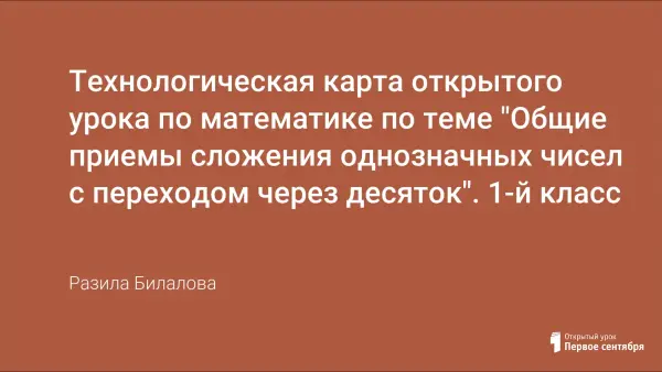 Представлена авторская разработка урока. На уроке ребята учатся анализировать, сравнивать и делать осознанный выбор. Развиваются вычислительные навыки, наблюдательность, внимание, грамотная математическая речь, геометрические представления. Формируется навык практической деятельности при сложении однозначных чисел с переходом через десяток.