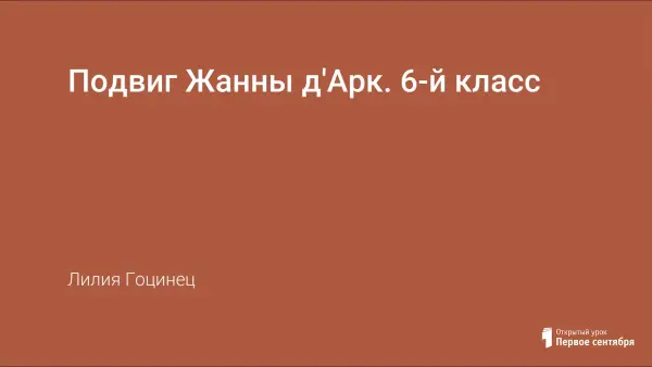 Урок в 6-м классе призван сформировать представление о героизме на примере подвига Жанны д'Арк, охарактеризовать этапы Столетней войны, выявить место, роль Жанны в войне, отношение к ней разных слоев населения, причины предательства, а затем возвышения королем до национальной героини, определить свое отношение к проблеме героизма.
