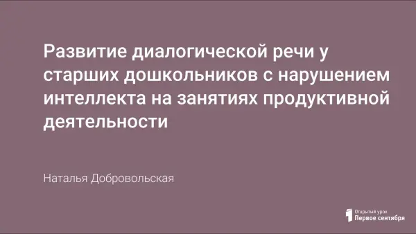Развитие диалогической речи – сложный, постепенный процесс, зависит от окружения ребенка, общения со взрослыми. У детей старшего дошкольного возраста с нарушением интеллекта слабый интерес к окружающему, поэтому система занятий должна формировать и развивать продуктивную деятельность, устранять имеющиеся проблемы.
