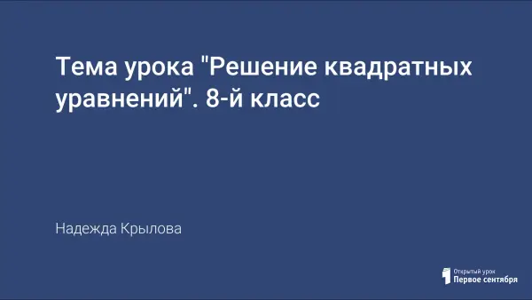 На уроке закрепляются способы решения неполных квадратных уравнений; повторяется решение полных квадратных уравнений в форме устного опроса и игры "Крестики и нолики". Рассматривается решение уравнений, сводящихся к квадратным.