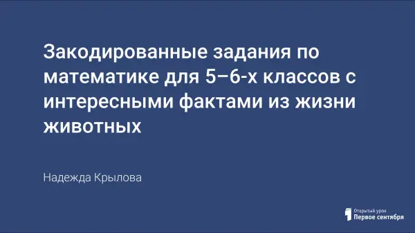 Проанализировав задания в учебниках математики 5–6-х классов я заметила, что в учебнике не осталось заданий с закодированным ответом и формулировки заданий скучные. А такие задания должны вызывать у ребят желание скорее получить ответ на поставленный вопрос. Все с увлечением должны выполнять задания, ставя каждому ответу в примере в соответствие букву. Выполняя данную работу, я поставила перед собой цель: подобрать к каждому такому заданию интересные факты из жизни животных, так как большинство современных людей живет далеко от мира диких животных. Редкие встречи с ними не дают нам возможности серьезно задуматься над всей сложностью и многообразием их жизни. Именно сегодня, когда диких животных на земле становится все меньше, а некоторые виды либо исчезли, либо стали редкими, мы должны знать о них больше. И, конечно же, хочется увидеть фото этого зверя.