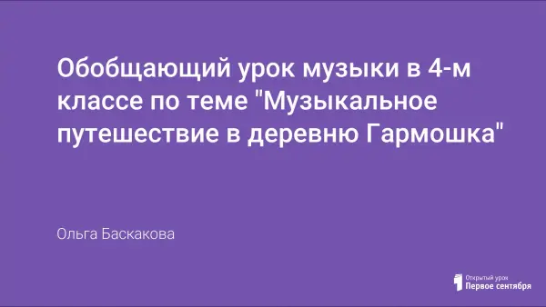 Цели урока: закрепить понятия: "народная" и "композиторская музыка"; продолжать развивать навыки музыкального восприятия и обогащать духовный мир детей.