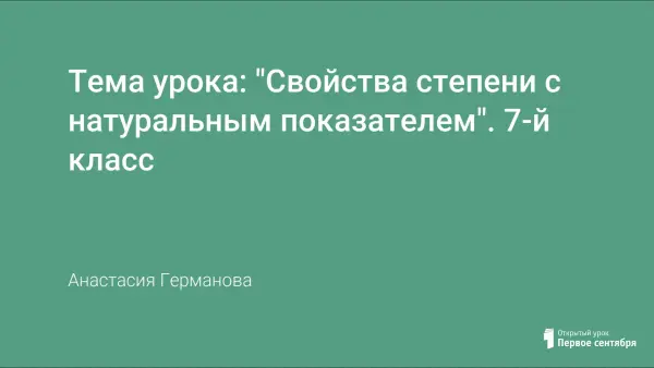 В ходе урока школьники изучают первые два свойства степени с натуральным показателем. У учащихся формируются начальные умения в применении свойства степени с натуральным показателем для преобразования числовых и алгебраических выражений, а также упрощения вычислений.