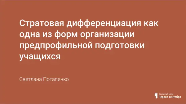 Предотвратить разочарование у школьника из-за ошибочного выбора профиля обучения призвана предпрофильная подготовка, одной из форм которой является стратовая дифференциация обучения, опыт применения которой при обучении математике в ГОУ гимназии №1587 г. Москвы рассмотрен в данной работе, целью которой стали анализ, обобщение и описание технологии стратовой дифференциации обучения.