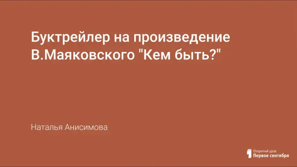 Представлена видеопрезентация к произведению В.Маяковского "Кем быть?".