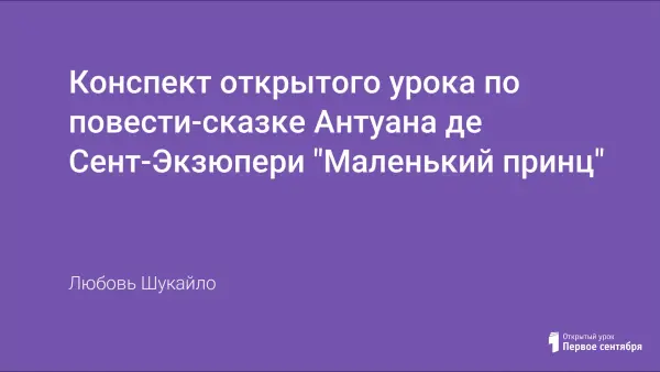 Представлена литературная игра по сказке «Маленький принц». Урок знакомит с жизнью и творчеством Антуана де Сент-Экзюпери. Через восприятие сказки Экзюпери «Маленький принц» воспитывается чувство дружбы и ответственности.