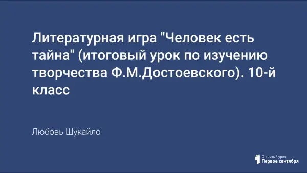 Цели урока: провести урок в форме литературной игры для подведения итога изучения творчества Ф.М.Достоевского в 10-м классе; формирование у учащихся целостного восприятия проблематики романа на основе сопоставления различных точек зрения; развитие умения сопоставлять, анализировать, аргументировать ответ; развитие творческих способностей и самостоятельности мнения; содействовать воспитанию и формированию гуманистических идеалов.