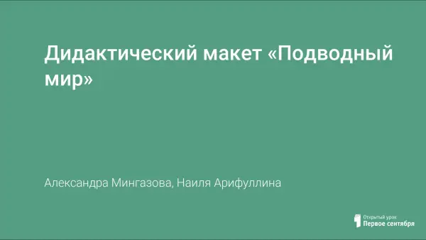Макет «Подводный мир» может быть использован в самостоятельных играх детей, воспитателями - в качестве наглядного и дидактического материала, при оформлении природного уголка в группе. Макет «Подводный мир» несложно смастерить, все материалы легкодоступны. Может быть изготовлен совместно с детьми. Цель занятия: с помощью природного материала и распечатанных иллюстраций изготовление макета «Подводный мир».