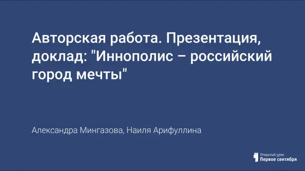 Авторская работа. Презентация, доклад: "Иннополис – российский город мечты"