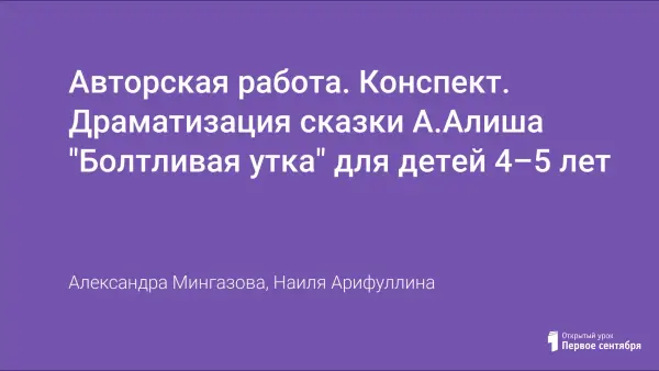Цель занятия: познакомить детей с произведением Абдулла Алиша «Болтливая утка».