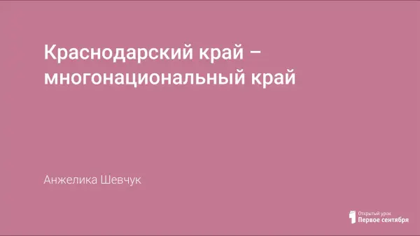 Цели урока: познакомить учащихся с особенностями национального состава населения Краснодарского края; развивать умение работать с Интернетом; воспитание культуры межнационального общения в современном мире.