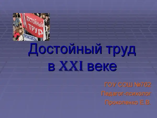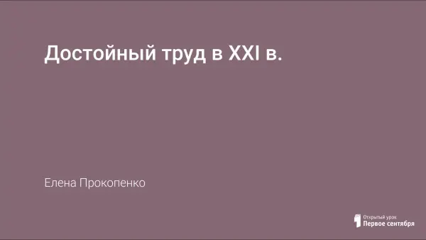 Автор знакомит учащихся о социально-экономической и этической природе понятия "достойный труд" и его связи с качеством жизни.