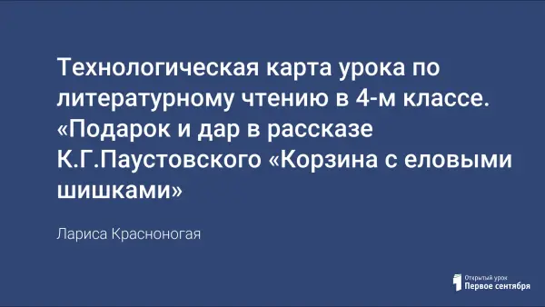 Технологическая карта урока по литературному чтению в 4-м классе. «Подарок и дар в рассказе К.Г.Паустовского «Корзина с еловыми шишками»