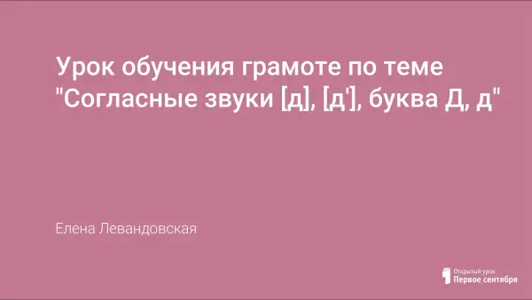 Урок обучения грамоте по теме "Согласные звуки [д], [д'], буква Д, д"