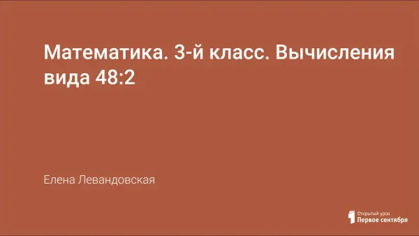 Цели урока: познакомить с приемом деления двузначного числа на однозначное вида 48:2; продолжать работу по закреплению знания таблицы умножения и деления; совершенствовать вычислительные навыки, решать задачи.