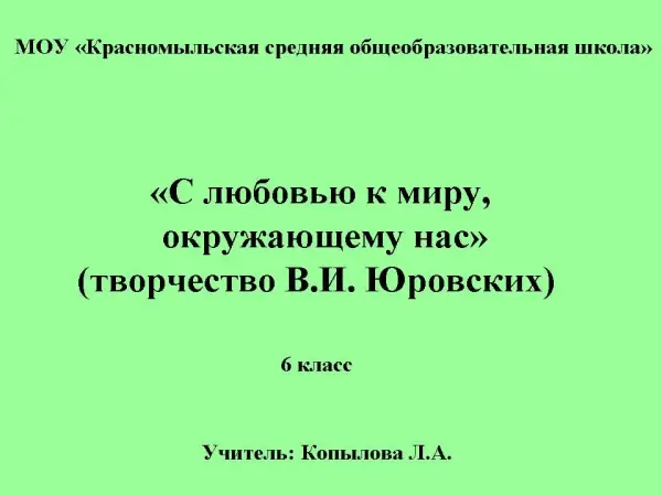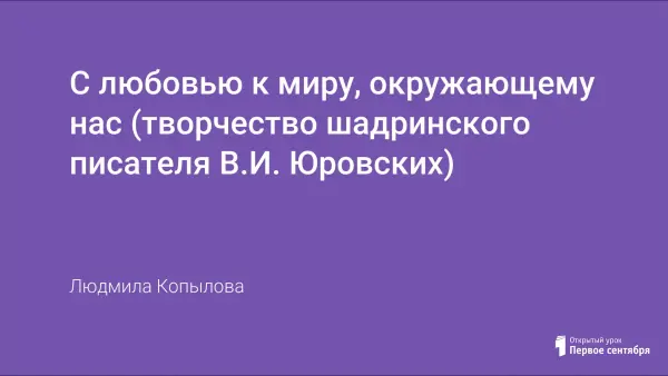Внеклассное мероприятие вызывает интерес учащихся к творчеству шадринского писателя В.И. Юровских. Знать историю своего родного края, относиться с любовью к миру, окружающему нас, – основная идея мероприятия. Внеклассные занятия по литературе приносят пользу детям: расширяют кругозор, приучают к самостоятельному чтению, воспитывают чувство гордости за свой край, за свою малую родину, в которой жили и живут такие замечательные люди.