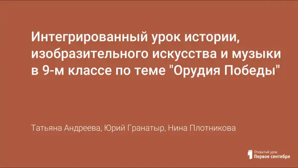 На уроке через исторические сведения об орудиях Великой Отечественной войны автор статьи показывает учащимся влияние трудового порыва и творчества на героизм народа. Воспитывает патриотизм и уважение к истории России. В ходе урока представлены как индивидуальные, так и разные модели коллективной деятельности учащихся, воспитывается чувство личного сопереживания к тем, кто отстоял Родину, чувство гордости за свою страну и жившие в ней поколения наших предков.