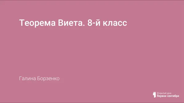 Цели урока: познакомить учащихся с теоремой Виета и ее применением при решении уравнений; развивать вычислительные навыки.