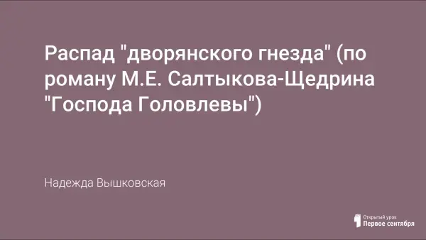 Итоговый урок по роману М.Е. Салтыкова-Щедрина «Господа Головлевы» направлен не только на обобщение знаний учащихся и совершенствование навыков устного ответа, умения работать с текстом, но и на достижение нравственной задачи урока: воспитание правильного понимания важности семейных устоев и ценностей, их роли в сохранении традиций и устоев общества, воспитание ответственности за свои поступки.