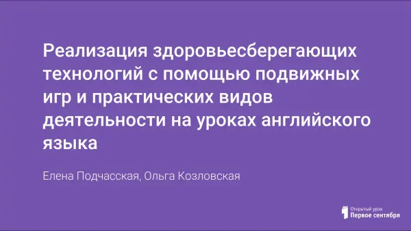 Реализация здоровьесберегающих технологий с помощью подвижных игр и практических видов деятельности на уроках английского языка