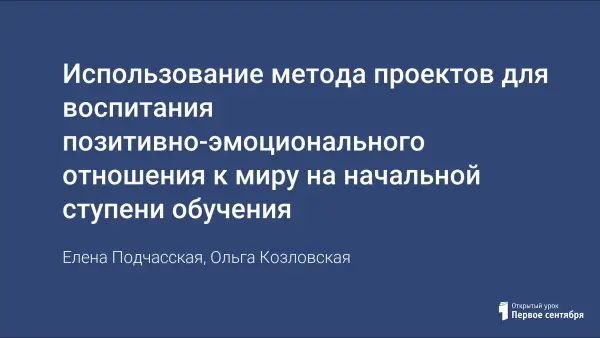 Использование метода проектов для воспитания позитивно-эмоционального отношения к миру на начальной ступени обучения