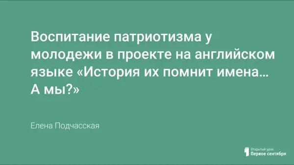 Проектная работа, выполненная на английском языке, не только повышает мотивацию к изучению предмета и расширяет знания и коммуникативные навыки английского языка, но и формирует чувство патриотизма у молодежи.