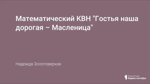 Занятие проводится в форме КВН для 4-го класса. Занятие посвящено русскому празднику – Масленица. Материалы урока могут использоваться учителями, классными руководителями в учебной и внеклассной работе для ознакомления с русскими традициями, развития интеллектуальных способностей у учащихся, повышения интереса детей к математике.