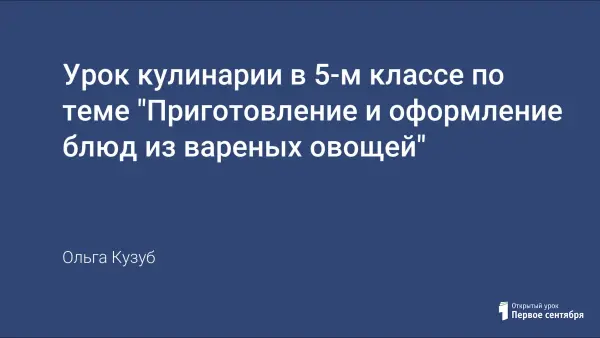 Цели урока: ознакомить учащихся с технологией приготовления блюд из вареных овощей; сформировать навыки по приготовлению и оформлению блюд из вареных овощей.