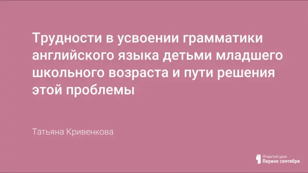 В статье предлагаются варианты решения проблемы усвоения грамматики английского языка детьми младшего школьного возраста.