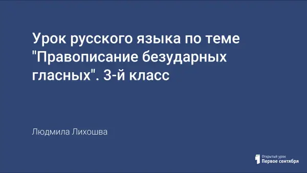 Занятие с целью продолжить формирование опыта в правописании слов с безударной гласной в корне слова.