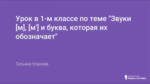 Разработка обучения грамоте в 1-м классе содержит презентацию и подробный конспект урока. Цель: познакомить со звуками [м], [м,] и буквой, которая их обозначает; научить отличать звуки [м], [м,] и букву, которая их обозначает, от других звуков и букв; научить читать слоги, слова с новой буквой. Занятие развивает фонематический слух, произвольное внимание, логическое мышление, связную речь; прививает интерес к предмету.