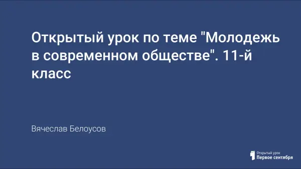 Урок позволяет углубить знания школьников о молодежи как о социальной группе; рассматриваются особенности социализации молодых людей в современных условиях; выявляются актуальные проблемы молодежи и показываются меры их решения местной властью.