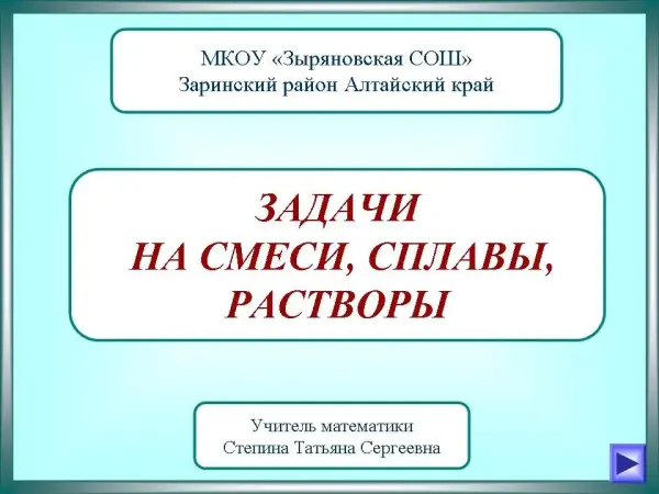 Задачи на смеси, сплавы, растворы входят в обязательный курс школьной математики и встречаются на ГИА и ЕГЭ. В школьных учебниках предлагается очень мало таких задач. При решении большинство учащихся испытывают затруднения, а решают лишь единицы. Эти задачи необходимо решать, начиная с 6-го класса. Их можно включить в уроки повторения, использовать для индивидуальной работы с сильными учащимися.